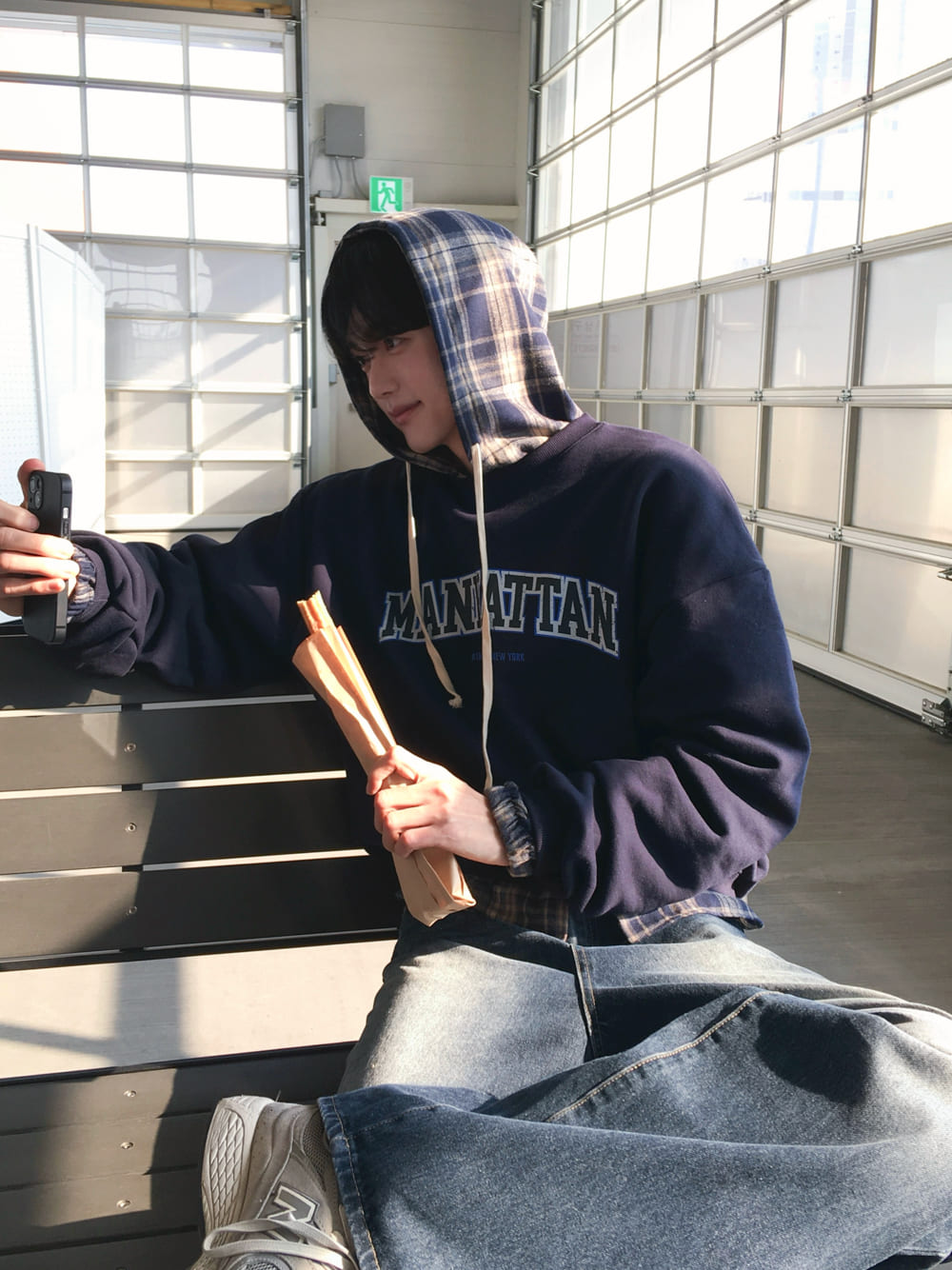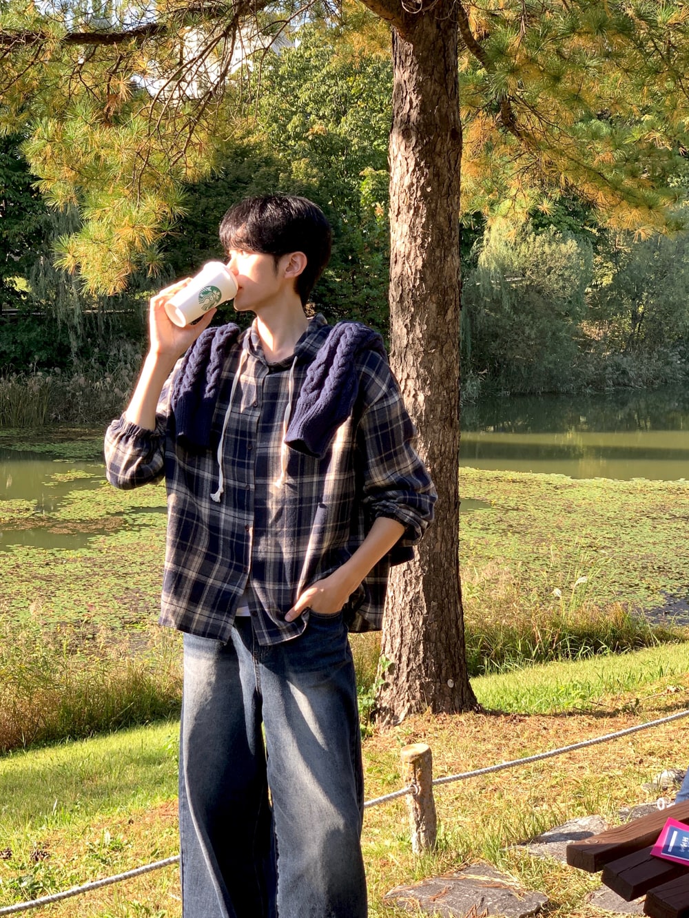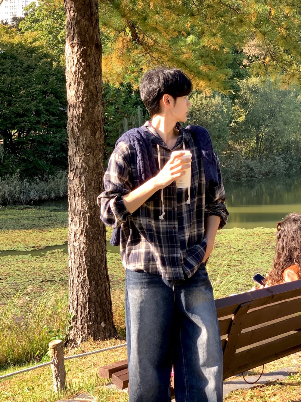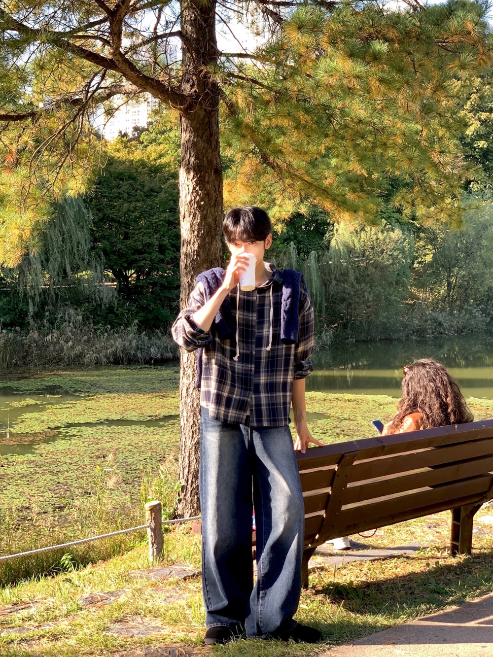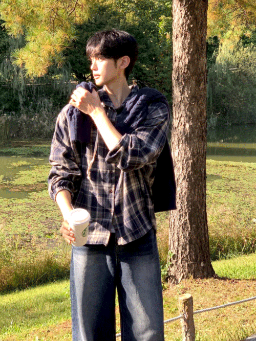 아이비 체크 후드 셔츠