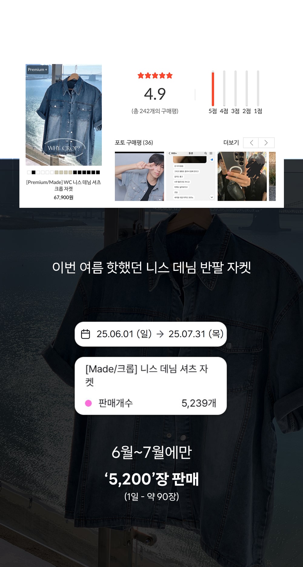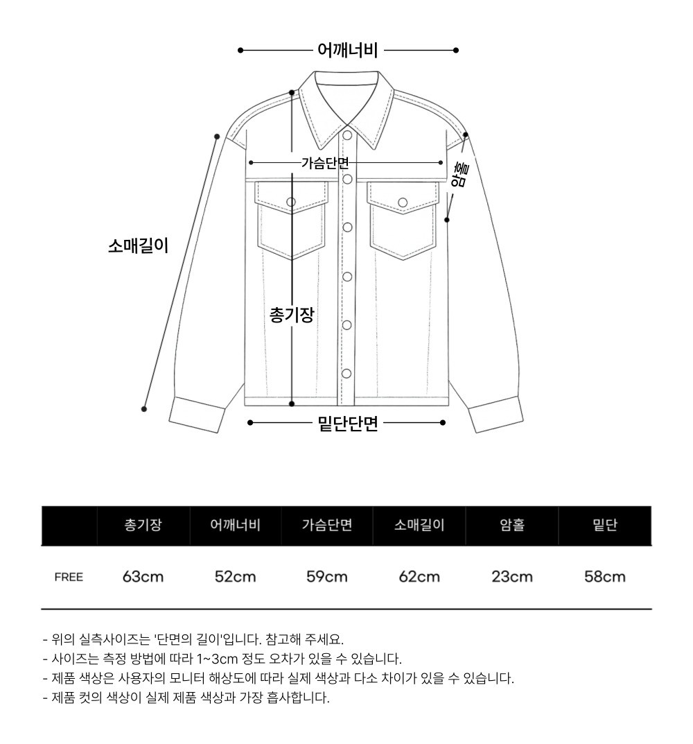 * 데님의 경우 워싱 작업 특성 상 색상 차이가 있을 수 있습니다.