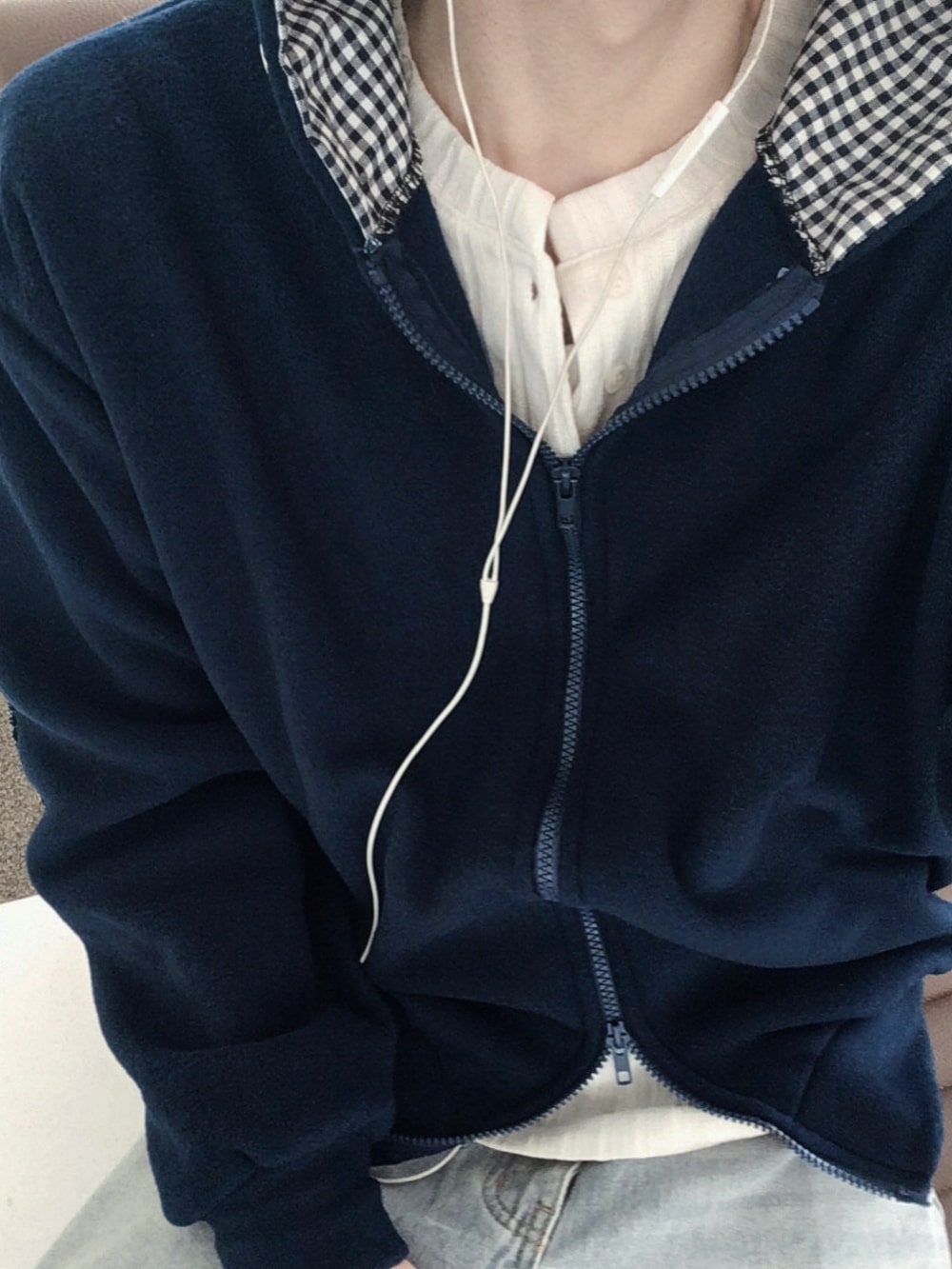 [크롭] 레이지 체크 포인트 후리스 후드집업