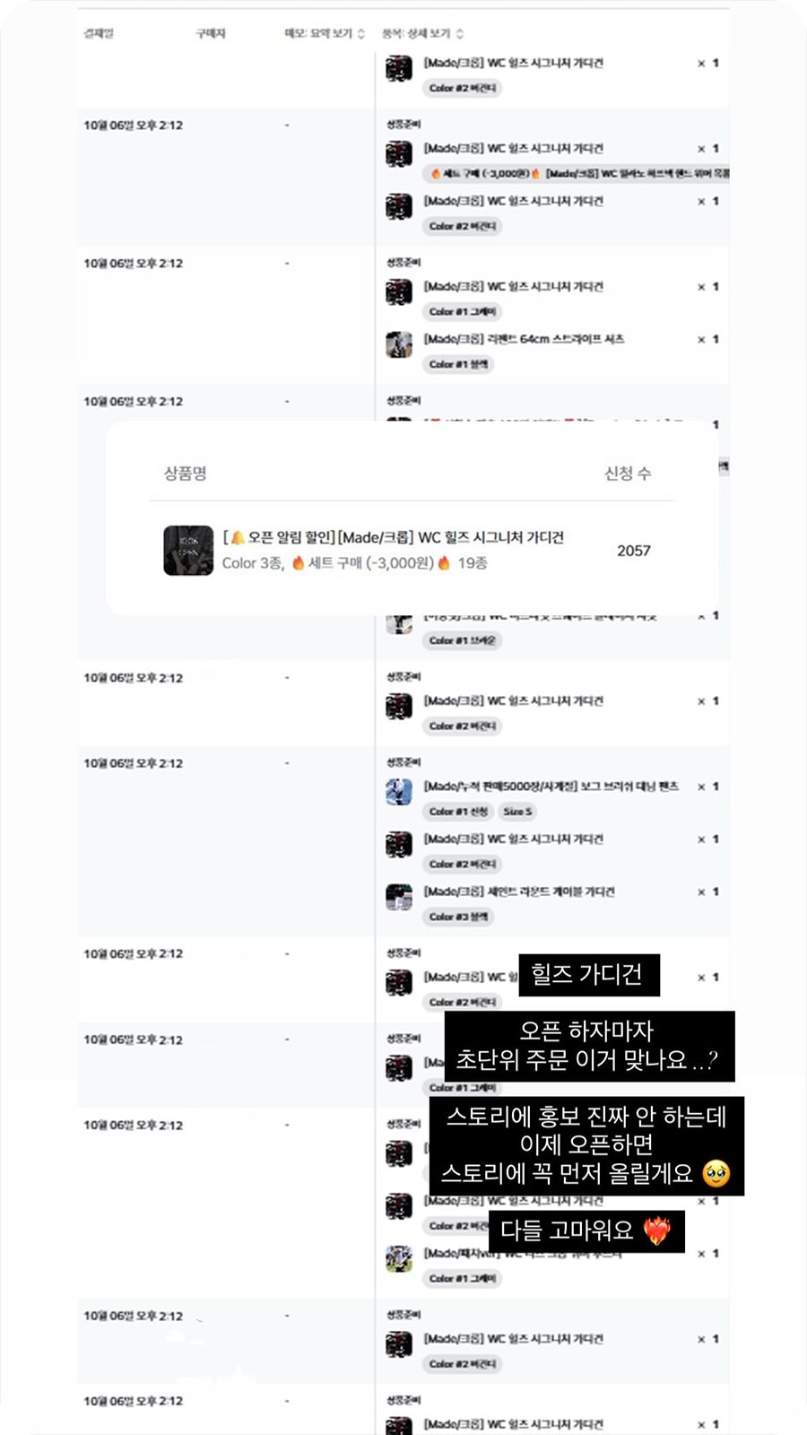 장바구니에 있는 상품과 같이 주문할까요?