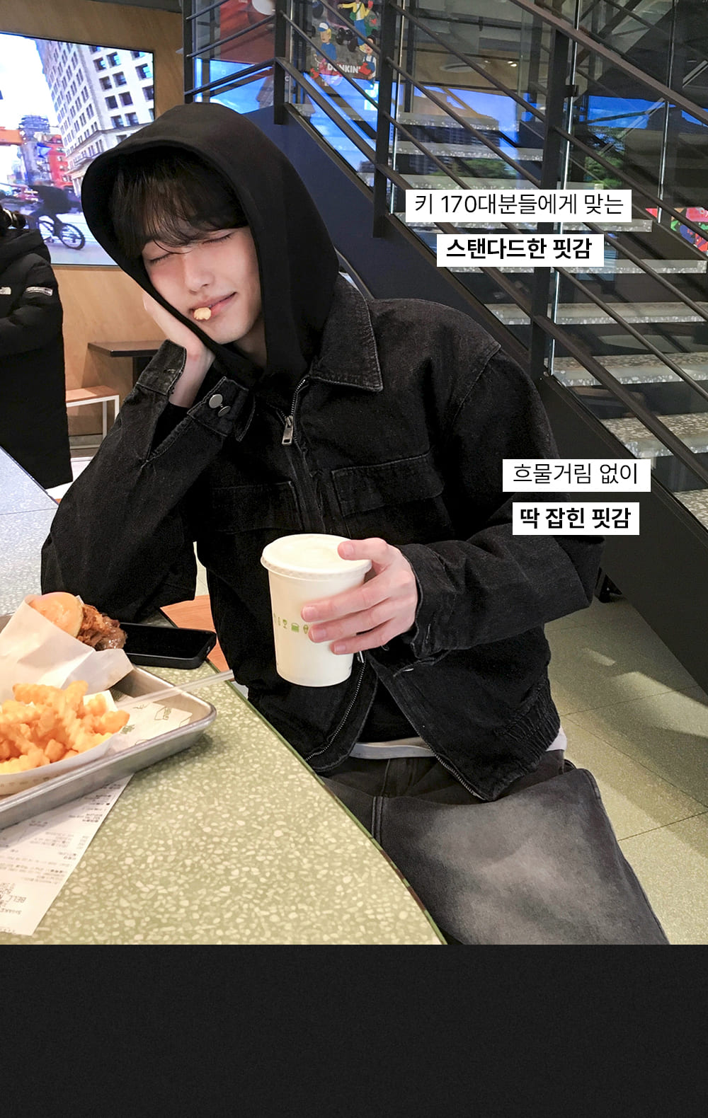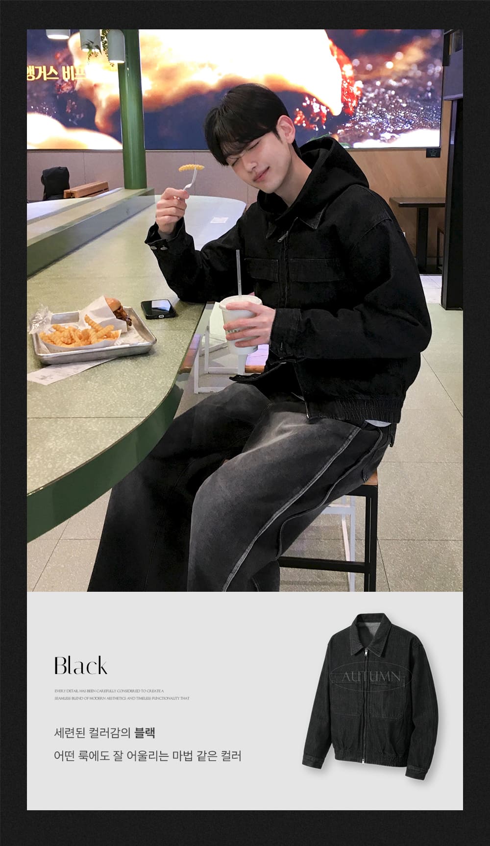 * 스톤 워싱 작업이 되는 제품으로 주머니 안쪽에서 돌 조각이 있을 수 있습니다.* 워싱 작업 시 틀어짐 방지를 위해 주머니 입구가 막혀 있을 수 있습니다. (가위로 가볍게 틀 수 있습니다.)* 스톤 워싱으로 인해 지퍼가 처음에 뻑뻑하거나, 안될 수 있습니다. 밑으로 끝까지 내려주신 뒤 끼우면 되는 점 안내드립니다.